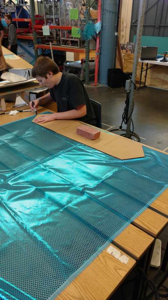 Today I left for orange county regional FRC competition. We got thereand started to get the robot past inspection. Shoulve been easy... but the inspectors believed that we had misinterpreted a bumper rule. we thought that because all of the front sides of the robot frame had been covered with bumper that we were in the clear. However they believed that we need at least 8 in. from the corners to be legal. At this point we were faced with the decision to either scrap the robot or not drive at all. We tried to find evidence that they were wrong so we could convince them they were wrong but we could not. While some of us were doing that other were going to town starting to dismantal the arm. Not beyond repair but enough that we at least had some progress if they stuck us to their rule. At the end of the day we passed inspection by scraping the ball holding capabilities of our robot and extending the bumpers.